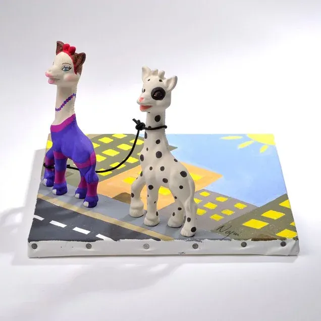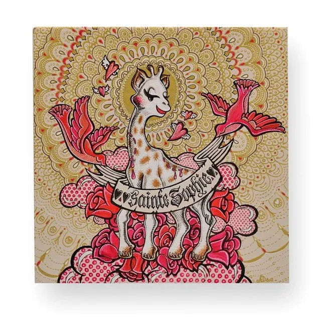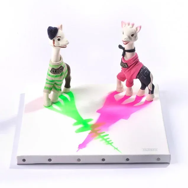 Żyrafa Sophie przyjęta przez celebrytów i przedstawiana przez artystów
