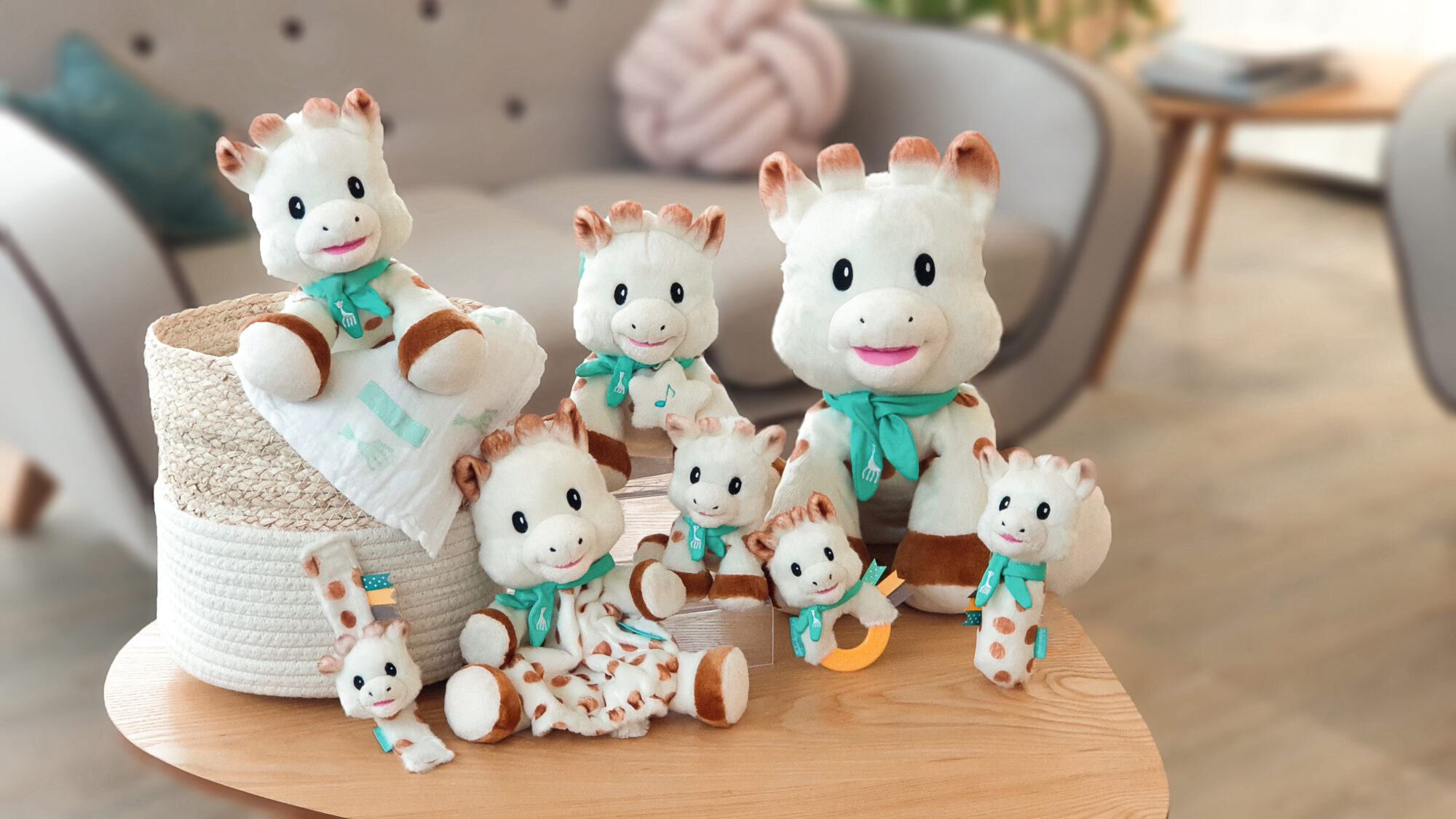 Wyjątkowo miękki, aksamitny i futrzany pluszak, bardzo elastyczny dzięki mikrokulkom umieszczonym w jego korpusie i w każdym końcu kopytek. Dzięki temu łatwo Żyrafę Sophie przytulić lub też ustawić.