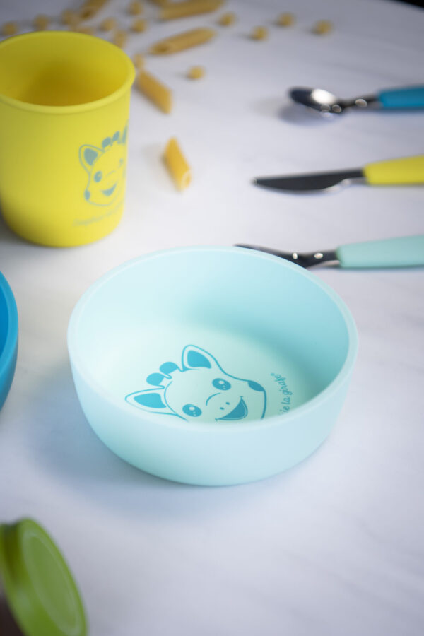 Nasza miseczka jest wykonana w 100% z silikonu, co czyni ją bezpieczną dla niemowląt i maluchów. Silikon to materiał, który jest nie tylko trwały, ale również bardzo łatwy do utrzymania w czystości. Miseczka jest gładka, przyjemna w dotyku, a jej subtelny design z uśmiechniętą buzią Żyrafy Sophie z pewnością zachęci Twojego malucha do nauki samodzielnego jedzenia. Jest to także praktyczne rozwiązanie dla rodziców, ponieważ nie trzeba się martwić o jej uszkodzenie, a po użyciu wystarczy ją włożyć do zmywarki.