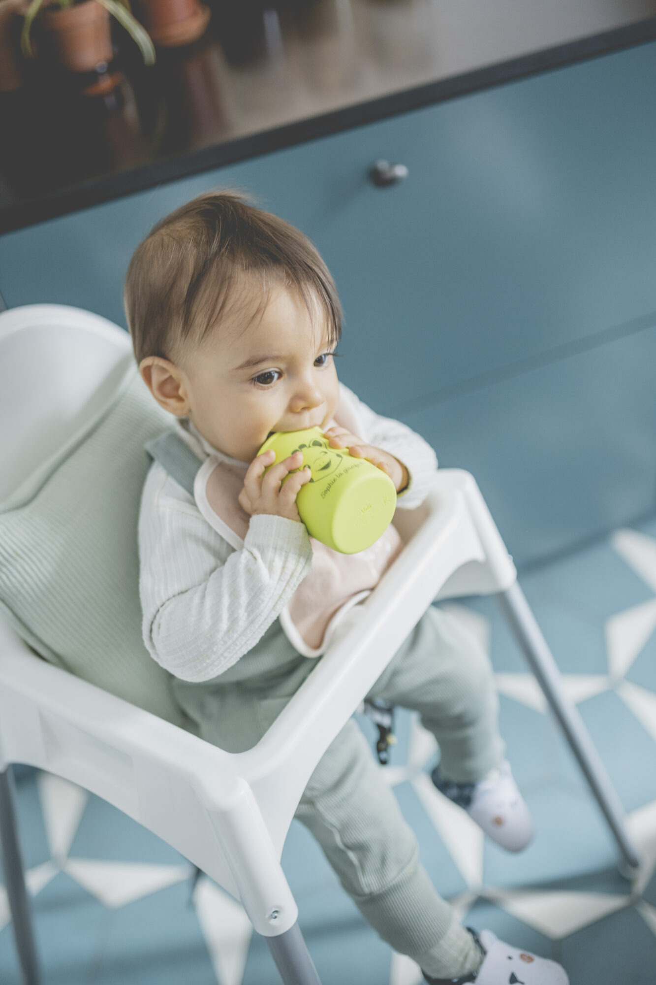Ten silikonowy kubek jest przeznaczony dla dzieci od 6. miesiąca życia, które zaczynają swoją przygodę z samodzielnym piciem. Dzięki wesołej buzi Żyrafy Sophie, kubek jest atrakcyjny wizualnie, a jednocześnie motywuje dziecko do nauki picia. Kolor kubka w odcieniu świeżego seledynu dodaje uroku i sprawia, że maluch chętniej po niego sięga.