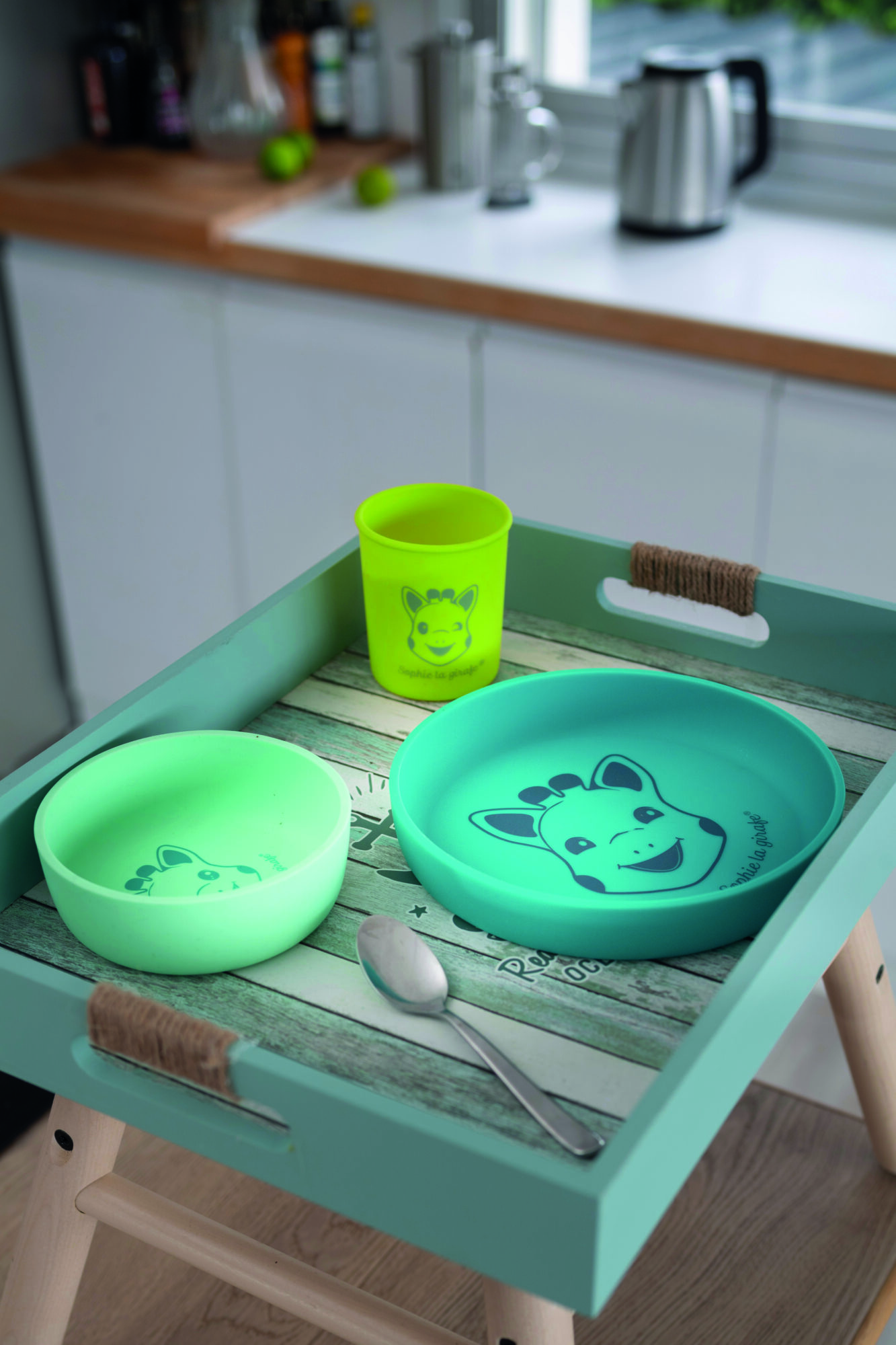 - Przyjazny design – uroczy wizerunek żyrafy Sophie motywuje dziecko do jedzenia