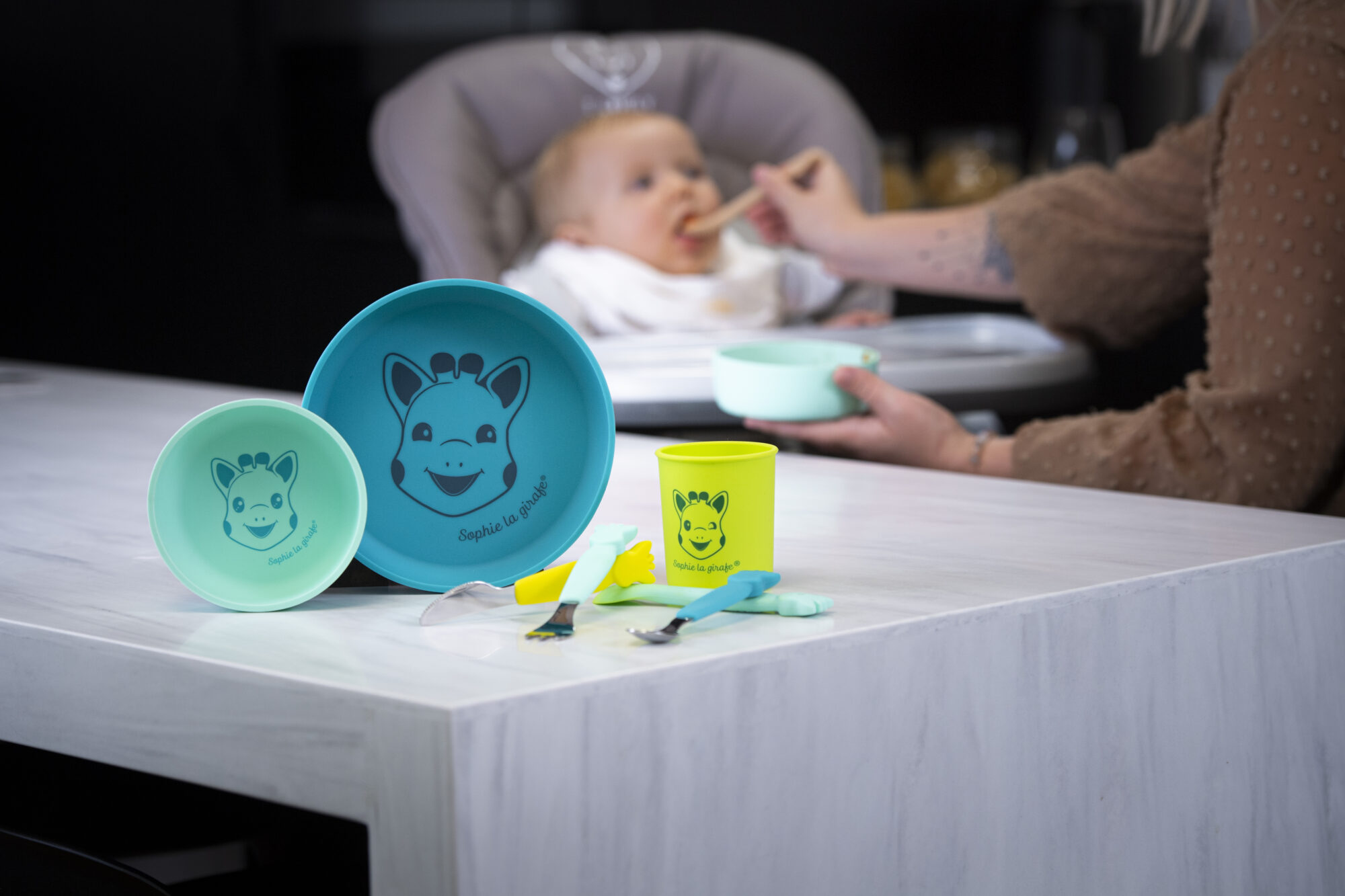 Silikonowy zestaw do jedzenia Sophie la girafe to bezpieczne dla niemowląt, praktyczne i stylowe rozwiązanie, które wspiera malucha w nauce samodzielnego jedzenia.
