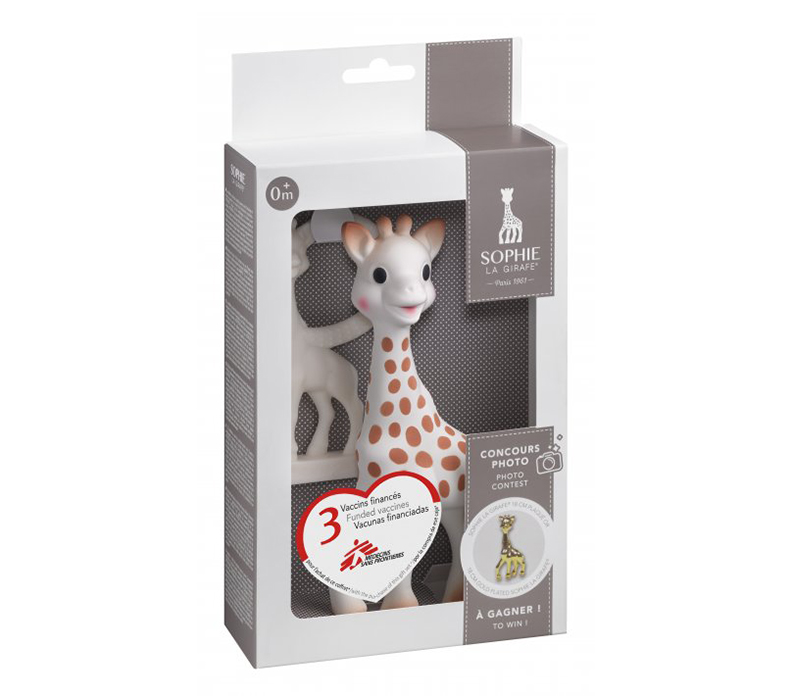 Gryzaki są zapakowane w estetyczne pudełko, które promuje coroczny konkurs “Konkurs na najpiękniejszego malucha Żyrafy Sophie”. To świetna okazja, aby wziąć udział w zabawie i wygrać atrakcyjne nagrody, przesyłając zdjęcie maluszka z gryzakiem.