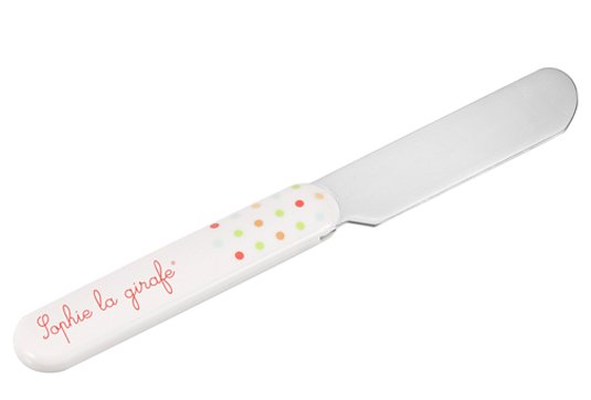 Uchwyty z tworzywa sztucznego, bez ftalanów i BPA. Część wkładana do buzi jest metalowa o zaokrąglonym kształcie. Produktu nie wolno wyparzać, wygotowywać, ani umieszczać w zmywarce. Myć ręcznie płynem do mycia naczyń, obficie płucząc wodą i wycierając do sucha. Sprawdzać przed każdym użyciem. Wyrzucić gdy pierwsze oznaki zniszczenia.