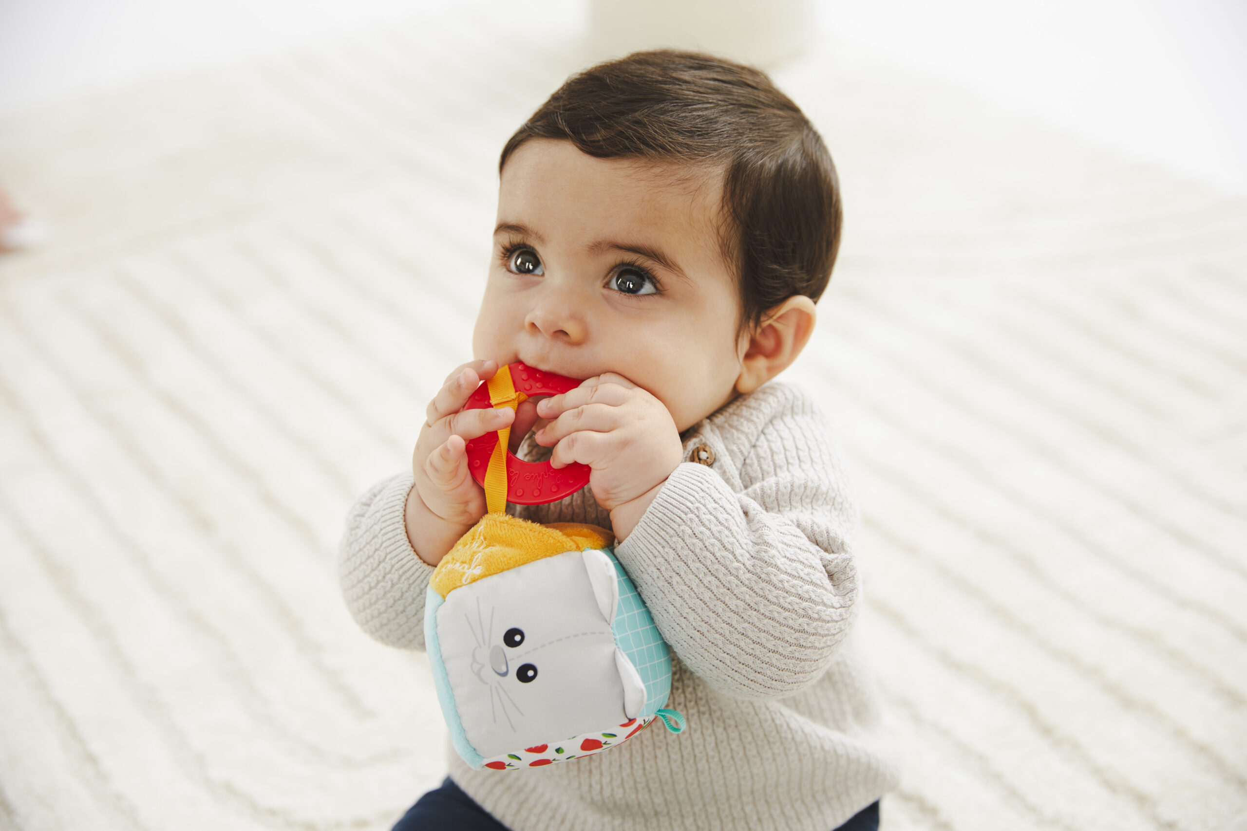 Odkryjcie edukacyjną wszechstronność kostek wielofunkcyjnych Żyrafy Sophie. Ten ujmujący zestaw oferuje różnorodność aktywności zaprojektowanych do bezpiecznego i zabawnego stymulowania wczesnego rozwoju niemowląt. Dzięki teksturom, reliefom i żywym kolorom w każdej kostce, pobudzane są sensoryczne doświadczenia oraz wzmacniane umiejętności motoryczne i koordynacjne ręka-oko.